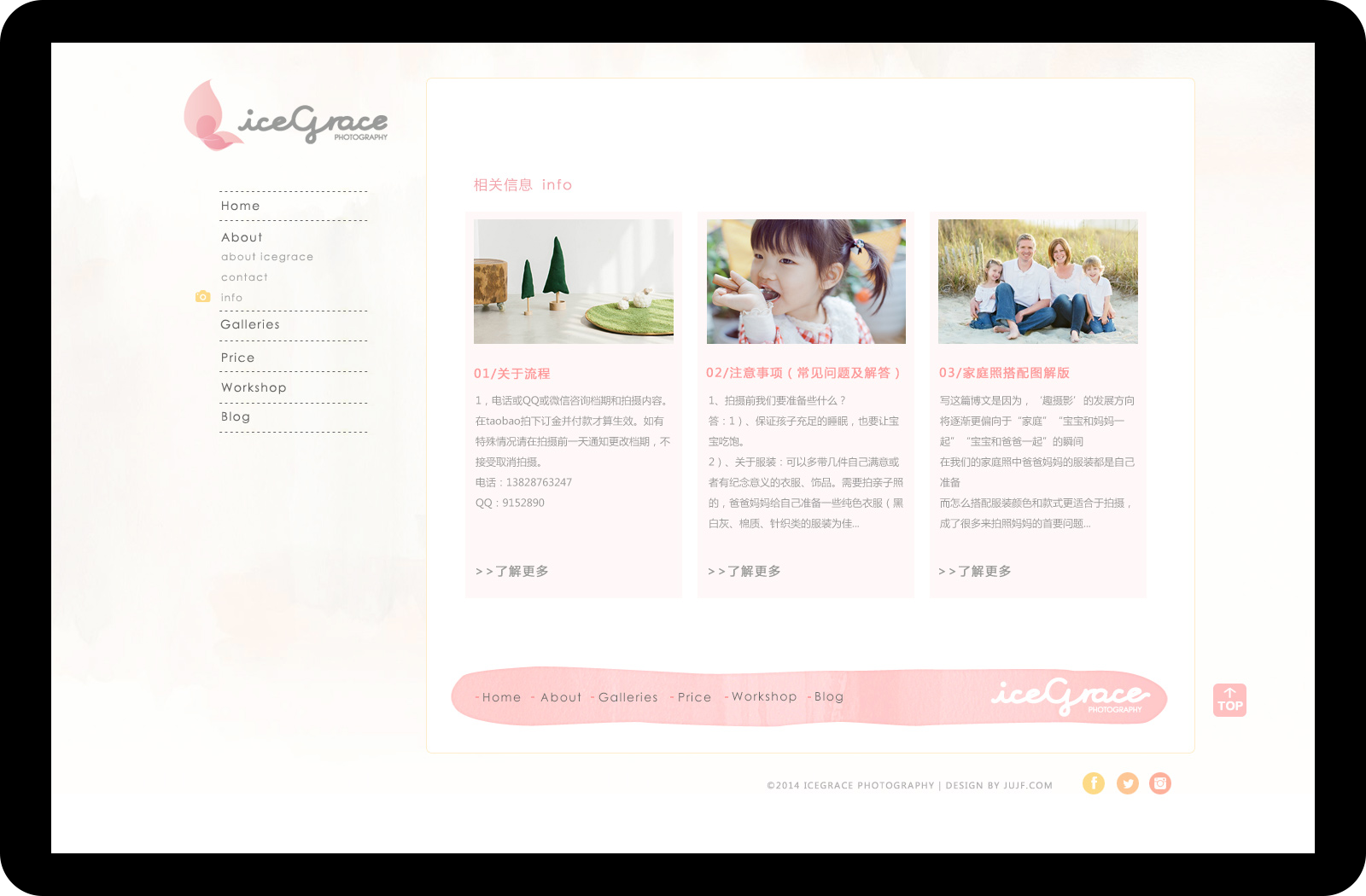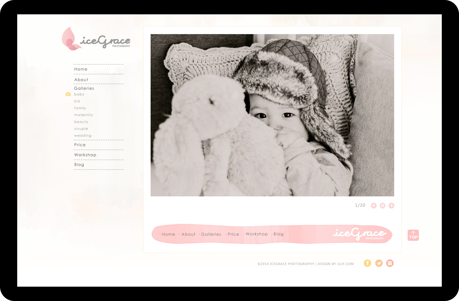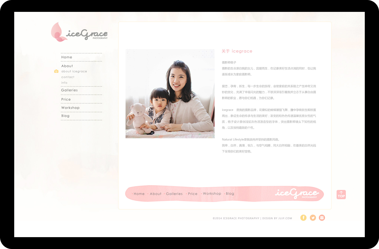 icegrace 是我的摄影品牌,花瓣似的蝴蝶展翅飞舞,腹中孕育新生即将脱茧而出,象征生命的传承与生活的美好;渐变的粉色传递温馨优雅女性的气质,格子设计原创浅铅灰色活泼造型的字体,突出摄影师镜头下知性的视角,以及独特趣致的个性。